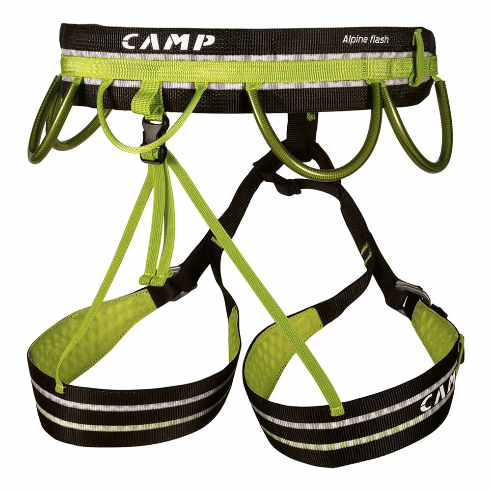 The Alpine Flash builds on the amazing Flash harness with a purpose-built design for technical alpinism and ice climbing at the highest level. By incorporating innovative Load Webbing construction, CAMP has achieved a remarkable combination of properties including exceptional comfort, hyperlight weight and hydrophobia, exceptional packability and minimalist construction that minimizes the number of stitch points. Features for ice climbing and alpinism include 5 gear loops (4 on the sides and 1 on the back), 4 integrated slots for Hub racking carabiners, and adjustable leg loops with auto-locking steel buckles.
