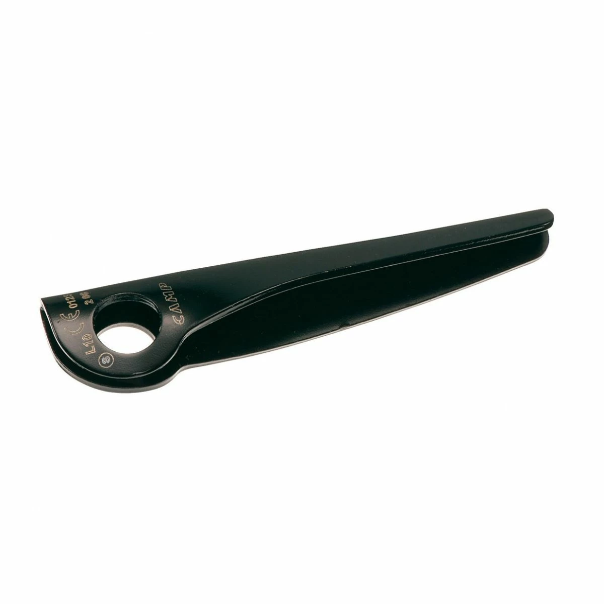 Most pitons rely on compression of the metal and leverage from directional pull for their holding power. The U shape of the shaft on the Corner piton adds an additional holding force by creating spring tension when the piton is driven into a crack proportionately smaller than its width.
