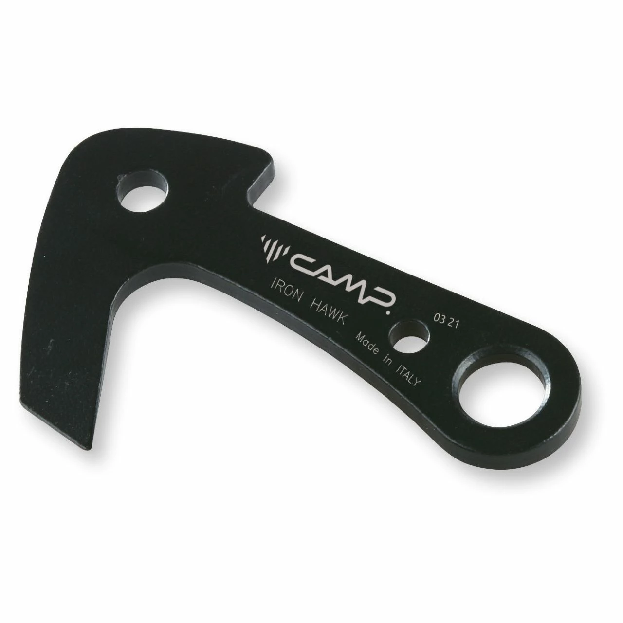A cross between a piton and a passive nut for almost non-existent vertical cracks, the CAMP Iron Hawk can be pounded in or set by hand and it drives deeper as it is weighted. It has a large anvil for hammering and a small lip to help with removal.