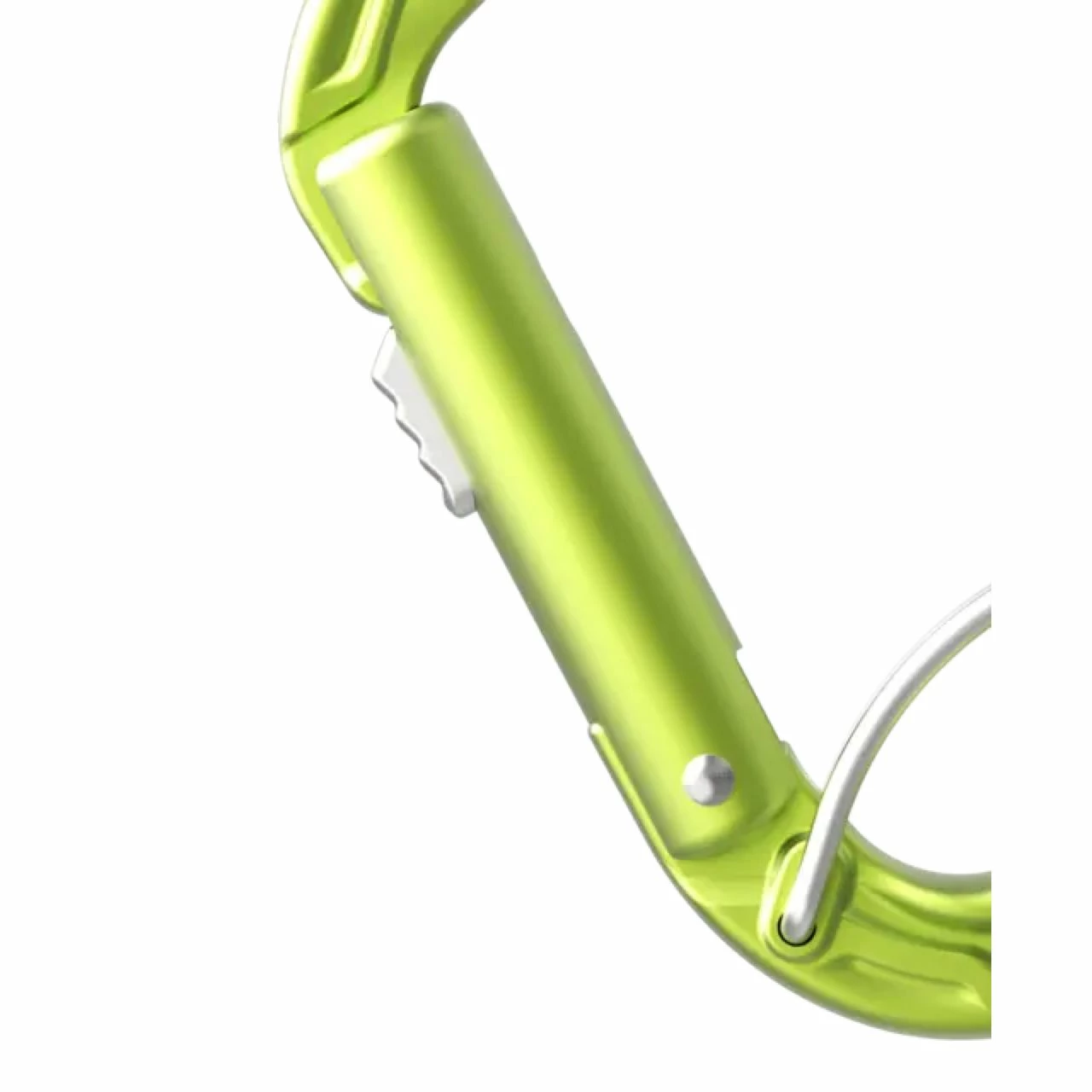 - Spring bar holds the carabiner in place when belaying to prevent cross-loading