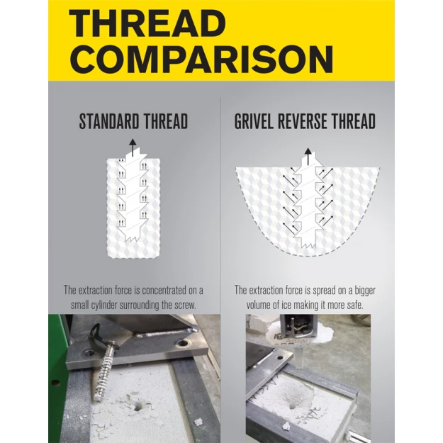 The Helix is Grivel’s easiest ice screw to place and remove. Easy to get the first bite in the ice thanks to its symmetrical grip. Easy to screw in thanks to the handle on the grip. Easy to attach a carabiner thanks to the shape of the ring. Easy to carry on the rack with a carabiner, even several at a time.