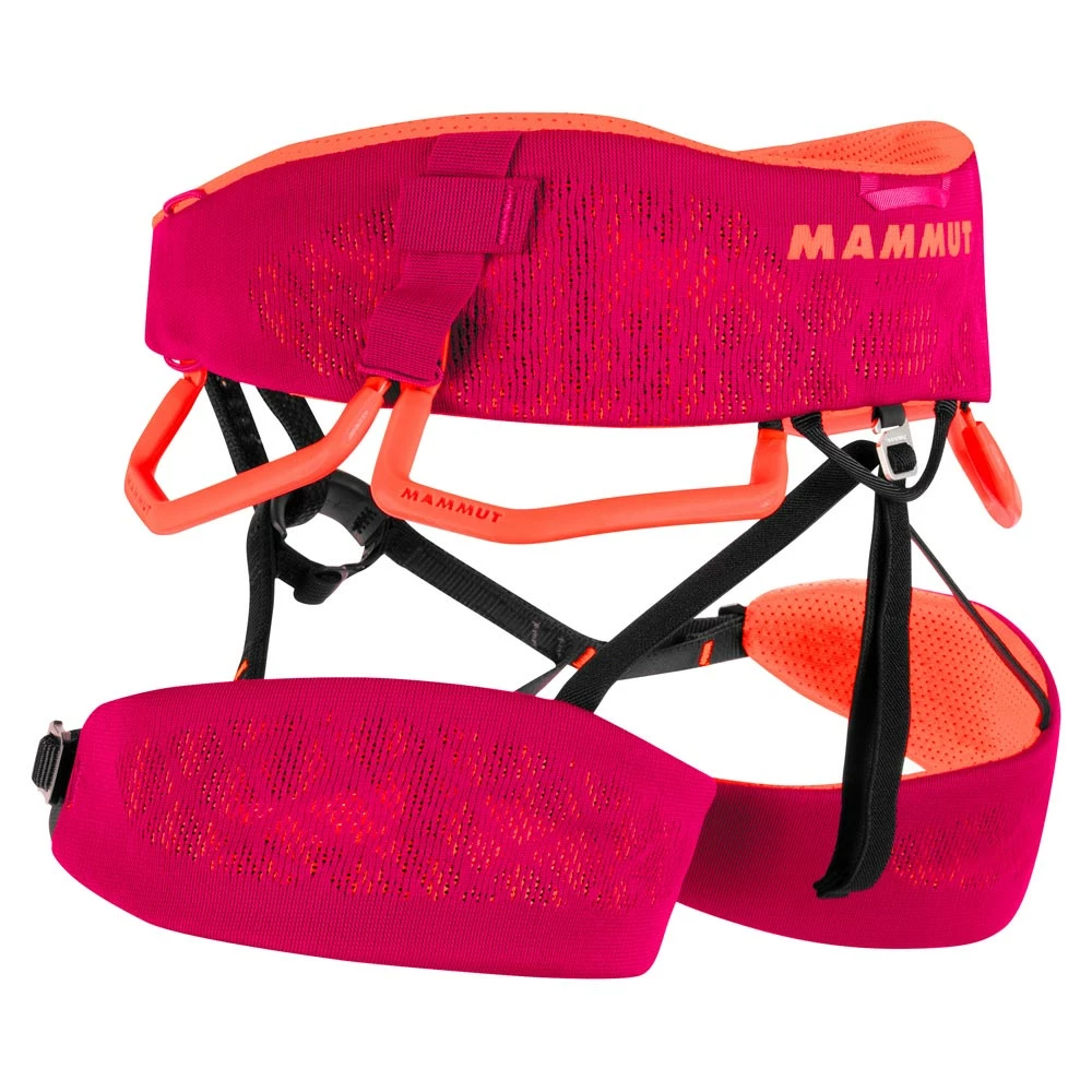 Mammut Comfort Knit Fast Adjust Harness Women: the first warp-knit climbing harness. Super-breathable thanks to the warp-knit open webbing structure. The soft edge of the hip belt ensures a comfortable fit. Perfectly balanced thanks to optimum weight control. The Comfort Knit Fast Adjust Harness Women is tailored to the female anatomy and can be adjusted in seconds.