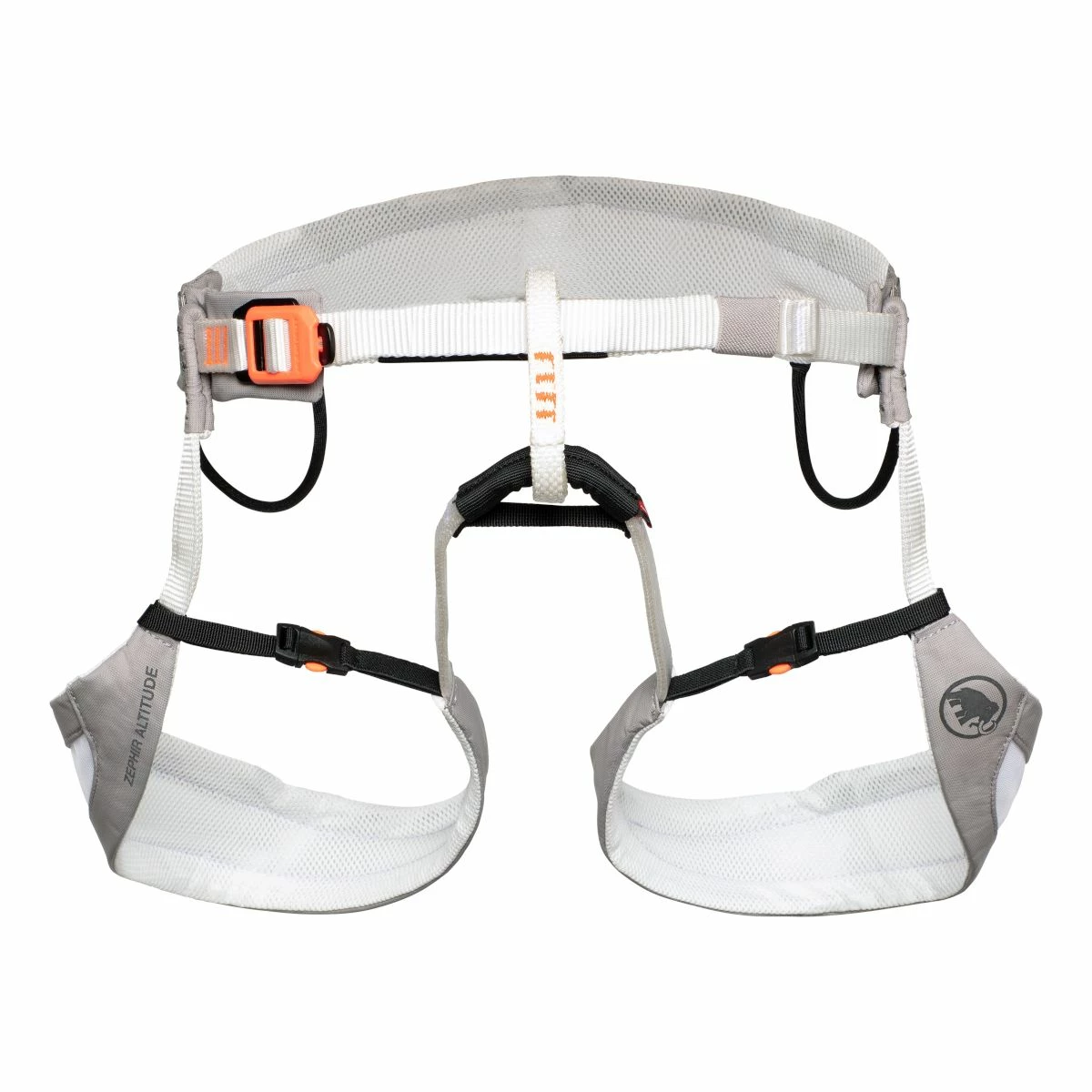 Extremely lightweight alpine harness with minimal packing volume for high-altitude and ski tours: the Mammut Zephir Altitude. Fully equipped technical harness with single-click buckle for easy putting on/taking off, even when wearing skis or crampons. Patented Split-Webbing technology in the hip belt in combination with HTPE webbing in the leg loop construction ensures a modern design and exceptional comfort. Large ventilation openings for maximum breathability. Gear loops and the drop seat buckle are positioned to allow the Zephir Altitude to be easily combined with a backpack and hip belt.