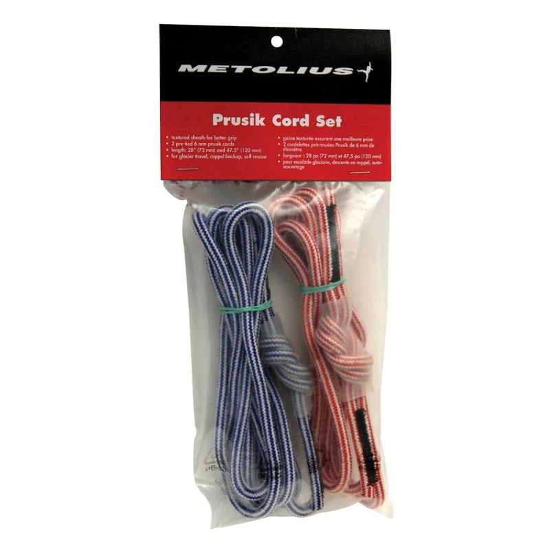 2 pre-tied 6mm prusik cords: one 28″ (72 cm) and one 47.5″ (120 cm)