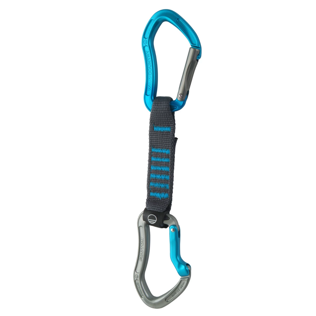 The superb hot forged Proton carabiners combine with Wild Country’s burly variable-width webbing to make an awesome sport climbing quickdraw. Deep internals locate both the bolt and rope perfectly, producing a clean hanging draw that’s perfectly balanced.