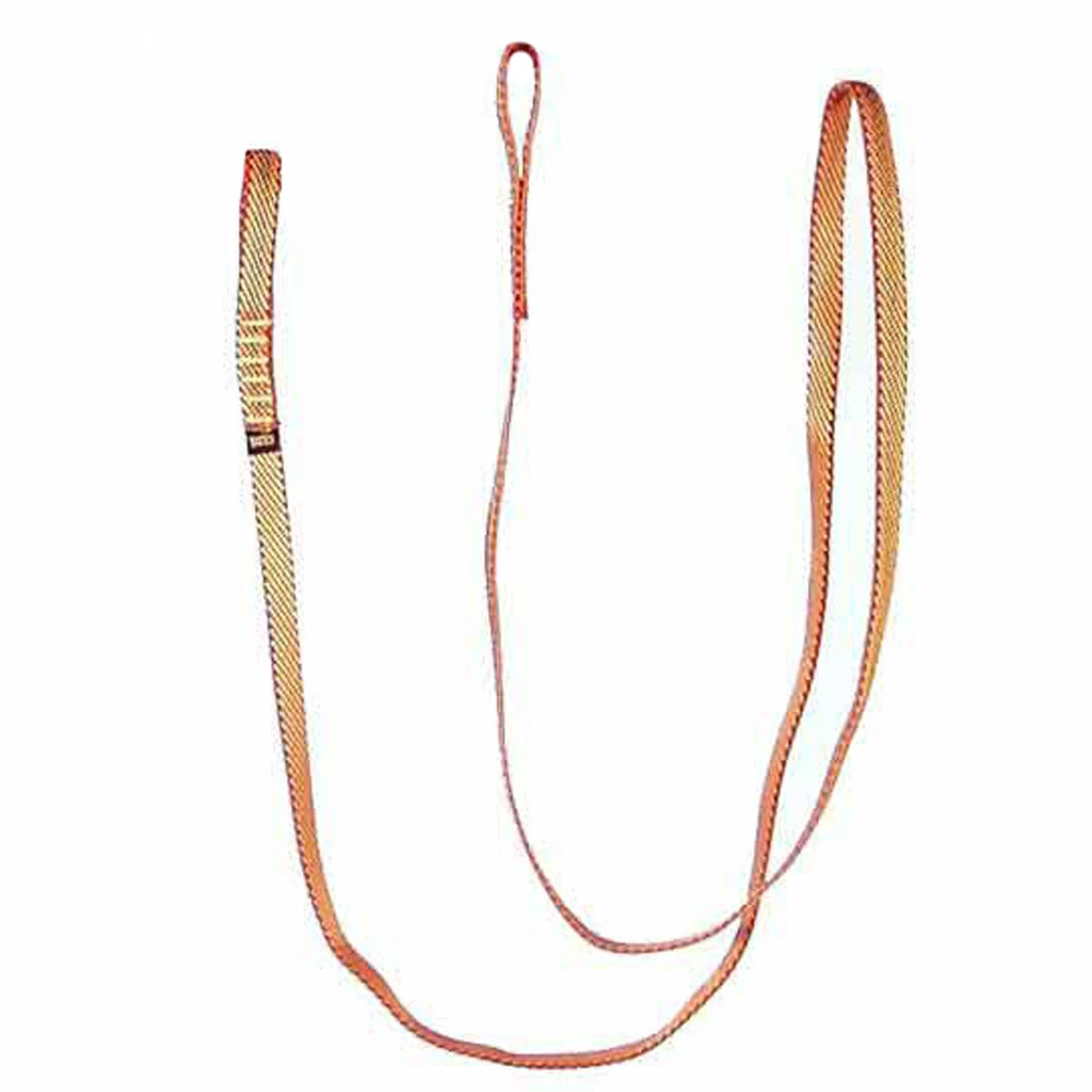 14mm Dyneema® webbing with a 3″ loop sewn at each end. Strength: 3800 lbs / 17kN (end to end).
